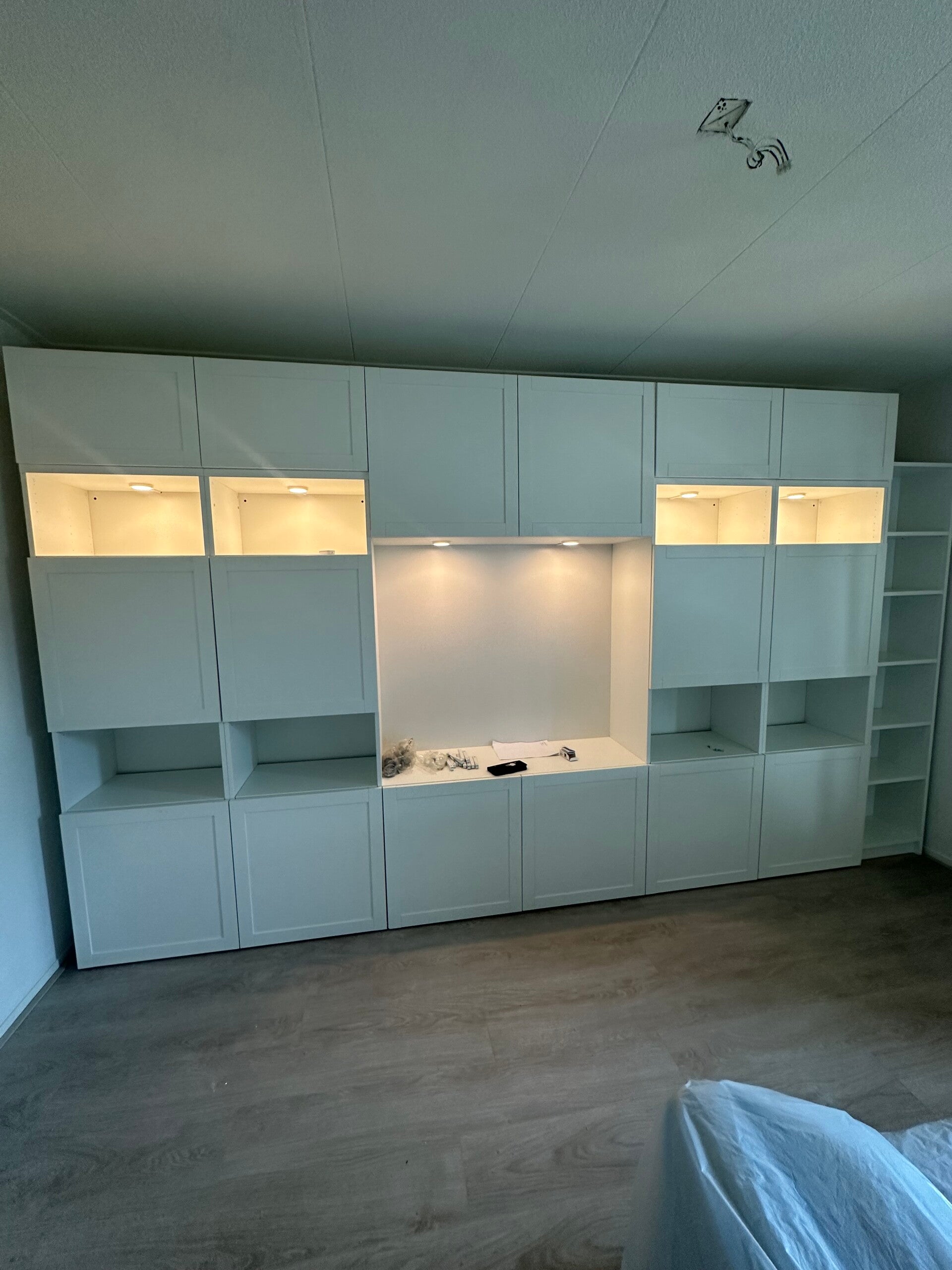 De kasten zijn vlot en vakkundig in elkaar gezet. Alles staat stevig, netjes waterpas en zonder enige schade. De werkwijze was professioneel en efficiënt, en alles werd na afloop keurig opgeruimd.